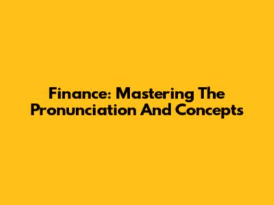 Finance: Mastering The Pronunciation And Concepts