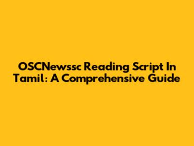 OSCNewssc Reading Script In Tamil: A Comprehensive Guide