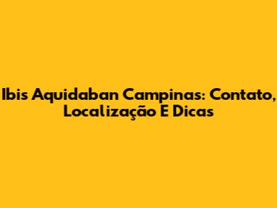 Ibis Aquidaban Campinas: Contato, Localização E Dicas