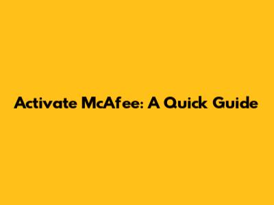 Activate McAfee: A Quick Guide
