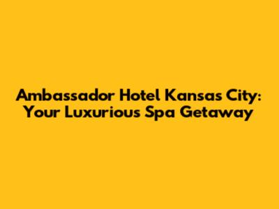 Hey guys! Are you looking for a luxurious escape in the heart of Kansas City? Look no further than the Ambassador Hotel! This isn't just any hotel; it's a place where elegance meets relaxation, and trust me, the spa is something you need to experience. Let's dive into everything that makes the Ambassador Hotel Kansas City a top-tier destination, focusing especially on its amazing spa offerings.