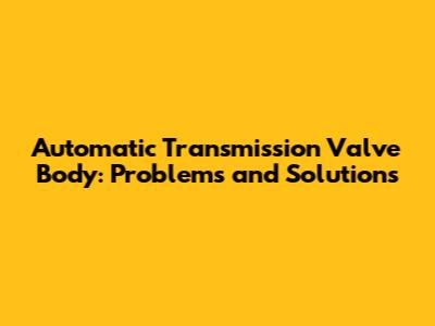 Automatic Transmission Valve Body: Problems And Solutions