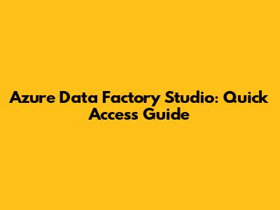 Azure Data Factory Studio: Quick Access Guide