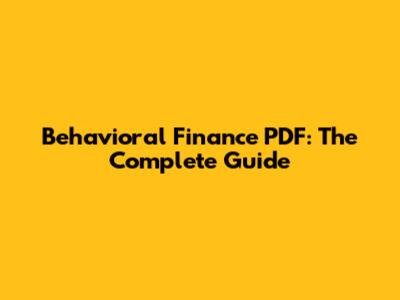 Behavioral Finance PDF: The Complete Guide