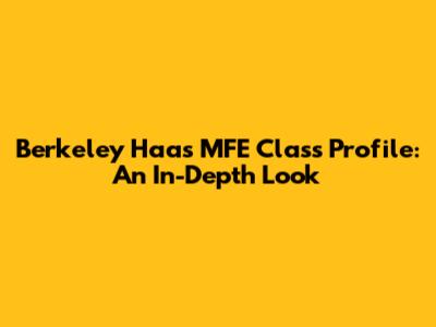 Berkeley Haas MFE: Class Profile Demystified
