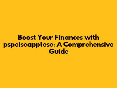 Boost Your Finances With Pspeiseapplese: A Comprehensive Guide
