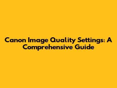Canon Image Quality Settings: A Comprehensive Guide