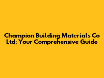 Hey everyone, let's dive into the world of Champion Building Materials Co Ltd! This article is your go-to resource for everything you need to know about this company – from its products and services to its overall impact in the construction industry. We'll explore what makes Champion Building Materials tick, and how they contribute to building projects. Get ready to learn about their offerings, their position in the market, and some key aspects that set them apart. Let's get started, shall we?