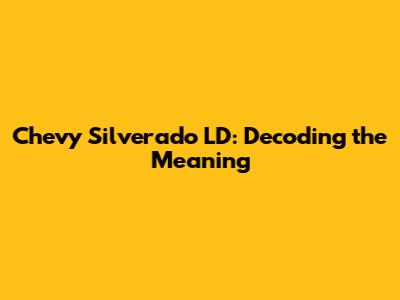 Chevy Silverado LD: Decoding The Meaning