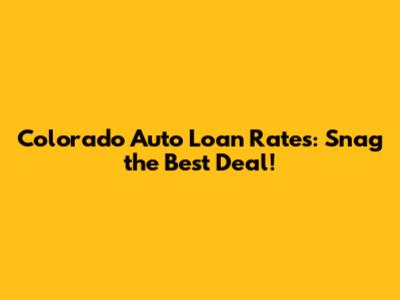Colorado Auto Loan Rates: Get The Best Deal!