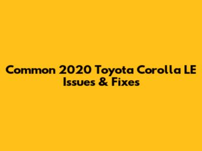 Common 2020 Toyota Corolla LE Issues & Fixes