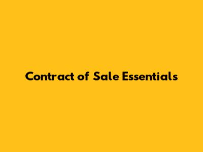 Contract Of Sale Essentials
