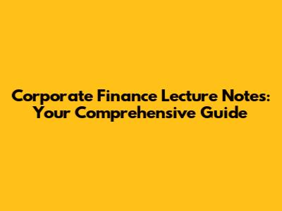 Corporate Finance Lecture Notes: Your Comprehensive Guide