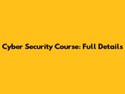 Cyber Security Course: Full Details