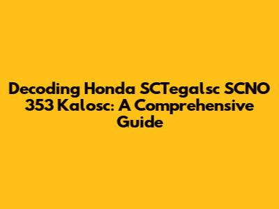 Understanding the Basics: What is Honda SCTegalsc SCNO 353 Kalosc?