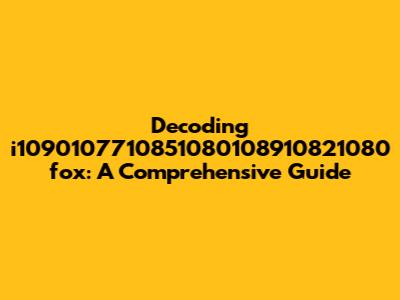 Decoding I1090107710851080108910821080 Fox: A Comprehensive Guide