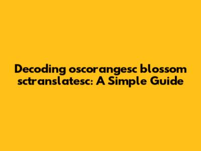 Decoding Oscorangesc Blossom Sctranslatesc: A Simple Guide