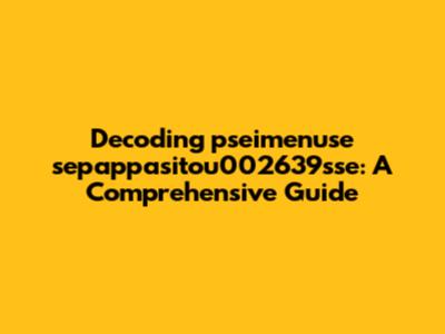 Decoding Pseimenuse Sepappasitou002639sse: A Comprehensive Guide