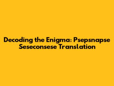 Decoding Psepsnapse Seseconsese: A Translation Guide