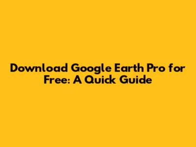 Download Google Earth Pro For Free: A Quick Guide