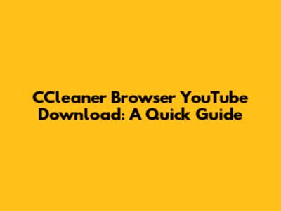 By following these methods and keeping the important considerations in mind, you can enhance your CCleaner Browser experience and enjoy YouTube videos on your terms. Remember to always browse responsibly and respect the rights of content creators. Have fun watching!