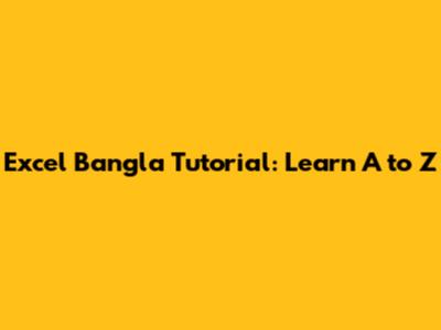 Excel Bangla Tutorial: Learn A To Z