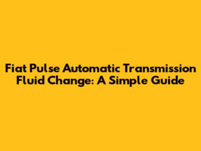 Fiat Pulse Automatic Transmission Fluid Change: A Simple Guide