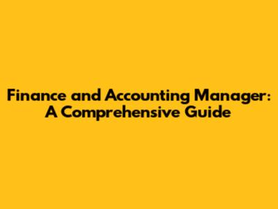 Finance And Accounting Manager: A Comprehensive Guide