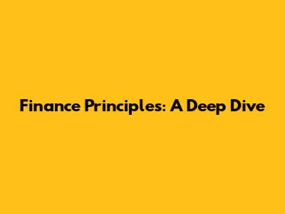 Finance Principles: A Deep Dive