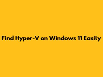 Find Hyper-V On Windows 11 Easily