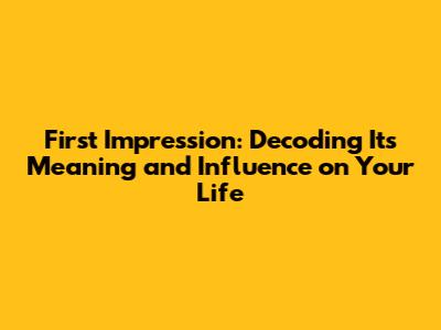 First Impression: The Meaning And Impact On Your Life