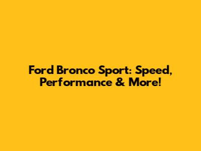 Ford Bronco Sport: Speed, Performance & More!