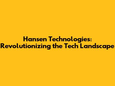 Hansen Technologies: Revolutionizing The Tech Landscape