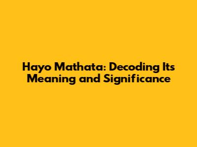 Hayo Mathata: Decoding Its Meaning And Significance