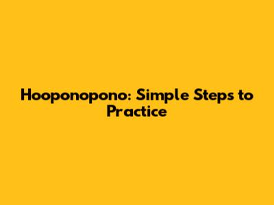 Ho'oponopono: Simple Steps To Practice