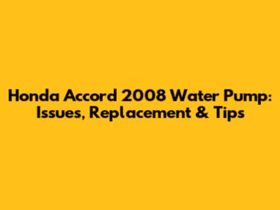 Honda Accord 2008 Water Pump: Issues, Replacement & Tips