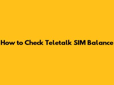 How To Check Teletalk SIM Balance