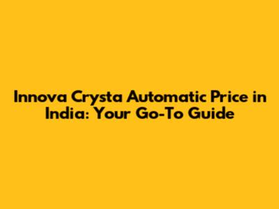 Innova Crysta Automatic Price In India: A Comprehensive Guide