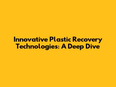 Innovative Plastic Recovery Technologies: A Deep Dive