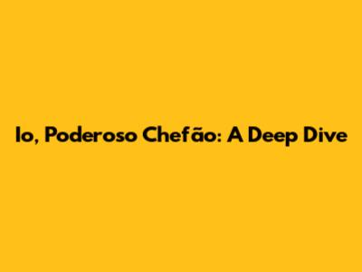 Hey guys! Ever wondered about diving deep into a fascinating topic? Well, today we're plunging into the world of "Io, Poderoso Chefão." Let's break it down and explore what makes it so intriguing. Buckle up, because we're about to embark on an epic journey!
