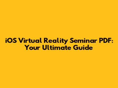 Hey guys! Ready to dive into the exciting world of iOS virtual reality? This article is your all-in-one guide, breaking down everything you need to know about a top-notch iOS Virtual Reality Seminar PDF. Whether you're a seasoned developer or just starting, we'll equip you with the knowledge to create immersive VR experiences on iOS. We'll explore the key components of a great seminar, what you can learn, and why this PDF is a must-have resource. So, buckle up; it's going to be an awesome journey.
