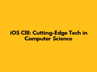 IOS CIII: Cutting-Edge Tech In Computer Science