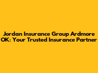 Hey guys! Looking for reliable insurance in Ardmore, OK? You've landed in the right spot! Let's dive into everything you need to know about Jordan Insurance Group and why they might just be the perfect fit for your insurance needs.