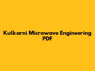 Kulkarni Microwave Engineering PDF: Free Download