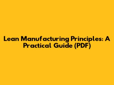Lean Manufacturing Principles: A Practical Guide (PDF)