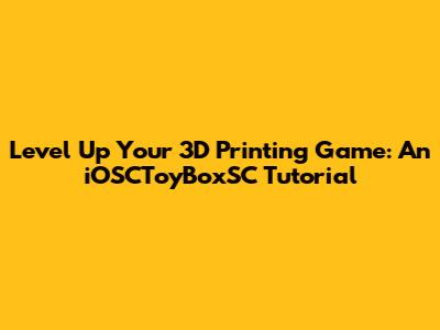 Level Up Your 3D Printing Game: An IOSCToyBoxSC Tutorial