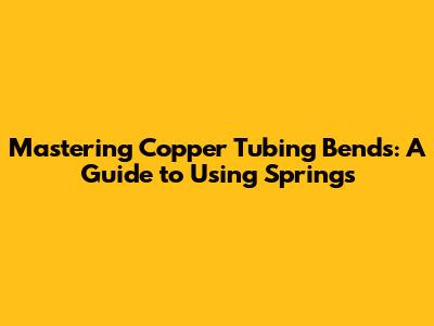 Mastering Copper Tubing Bends: A Guide To Using Springs