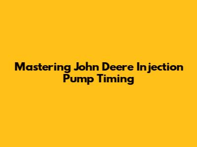 Mastering John Deere Injection Pump Timing
