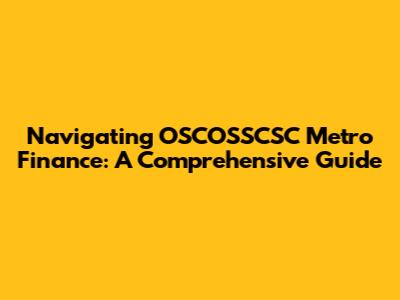 Navigating OSCOSSCSC Metro Finance: A Comprehensive Guide