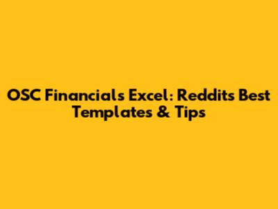 OSC Financials Excel: Reddit's Best Templates & Tips